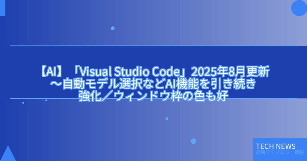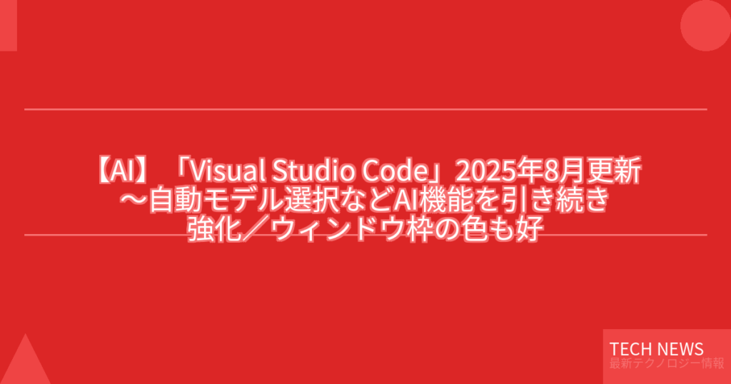 【AI】「Visual Studio Code」2025年8月更新 ~自動モデル選択などAI機能を引き続き強化/ウィンドウ枠の色も好みにカスタマイズできるv1.104.0が公開がもたらす革新