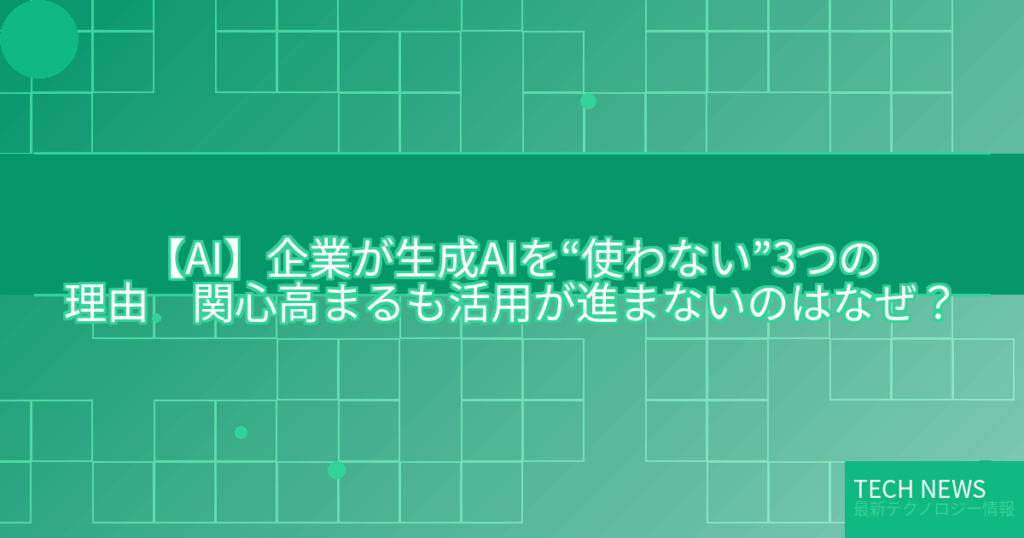 【AI】企業が生成AIを“使わない”3つの理由 関心高まるも活用が進まないのはなぜ?