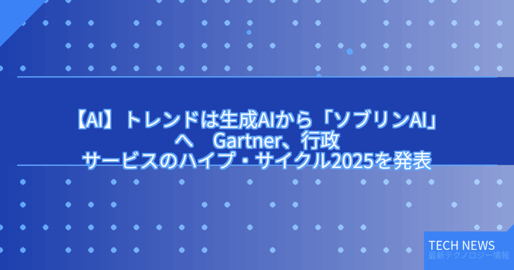 Gartnerは2025年の行政サービスのハイプ・サイクルにおいて、ソブリンAIとAIエージェントを中核技術と位置付けた。各国政府がテクノロジー主権や市民対応の自動化を推進する中、日本でも導入が進むと予測される。 -