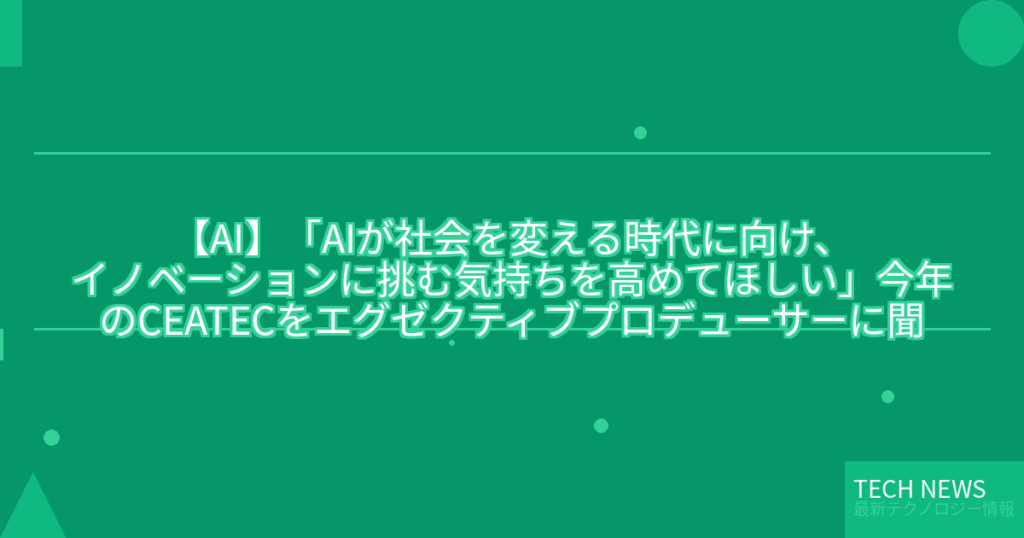 【AI】「AIが社会を変える時代に向け、イノベーションに挑む気持ちを高めてほしい」今年のCEATECをエグゼクティブプロデューサーに聞く AI関連出展は過去最多、AIでCEATEC自体を活用する企画も