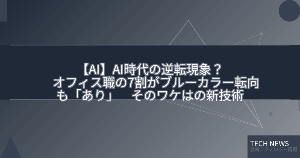 【AI】AI時代の逆転現象? オフィス職の7割がブルーカラー転向も「あり」 そのワケはの新技術