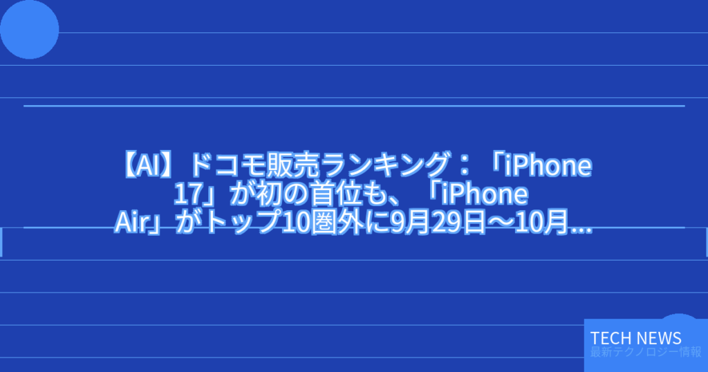 【AI】ドコモ販売ランキング:「iPhone 17」が初の首位も、「iPhone Air」がトップ10圏外に9月29日~10月5日の活用法