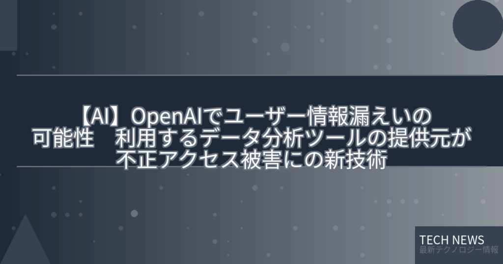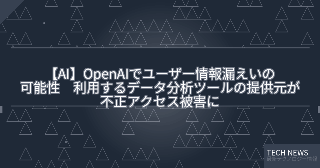 【AI】OpenAIでユーザー情報漏えいの可能性 利用するデータ分析ツールの提供元が不正アクセス被害に
