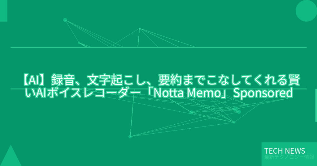 【AI】録音、文字起こし、要約までこなしてくれる賢いAIボイスレコーダー「Notta Memo」Sponsored