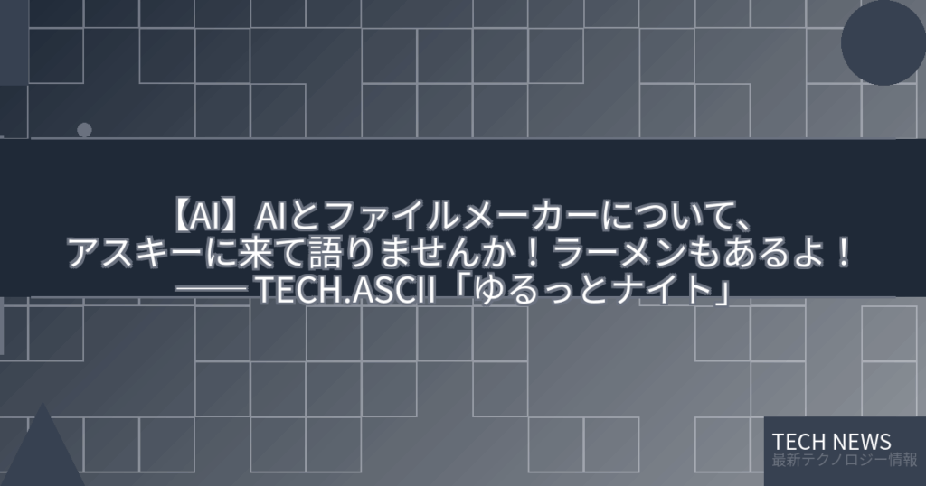【AI】AIとファイルメーカーについて、アスキーに来て語りませんか!ラーメンもあるよ!── TECH.ASCII「ゆるっとナイト」
