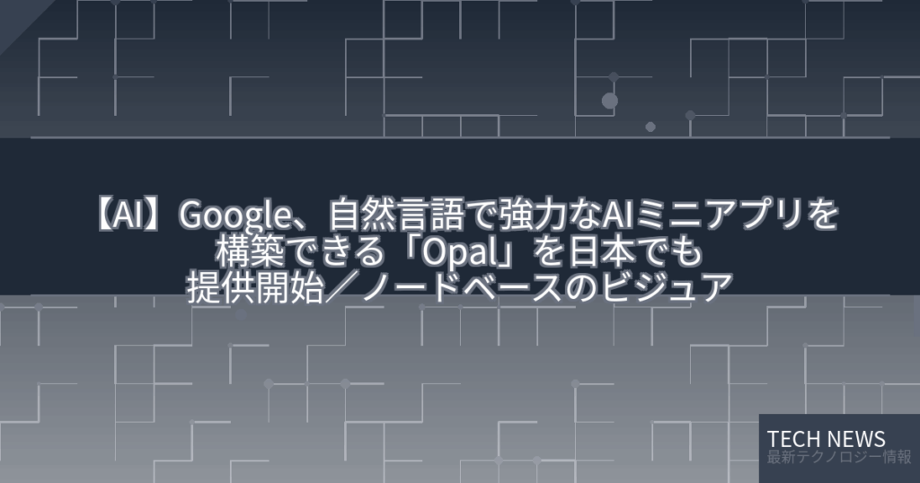 【AI】Google、自然言語で強力なAIミニアプリを構築できる「Opal」を日本でも提供開始/ノードベースのビジュアルエディターでデバッグ、コーディングの知識は不要