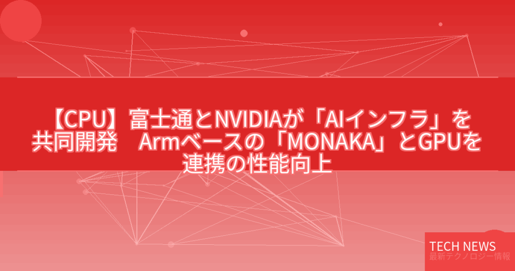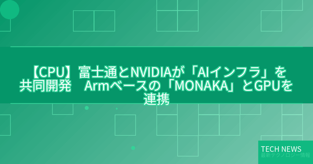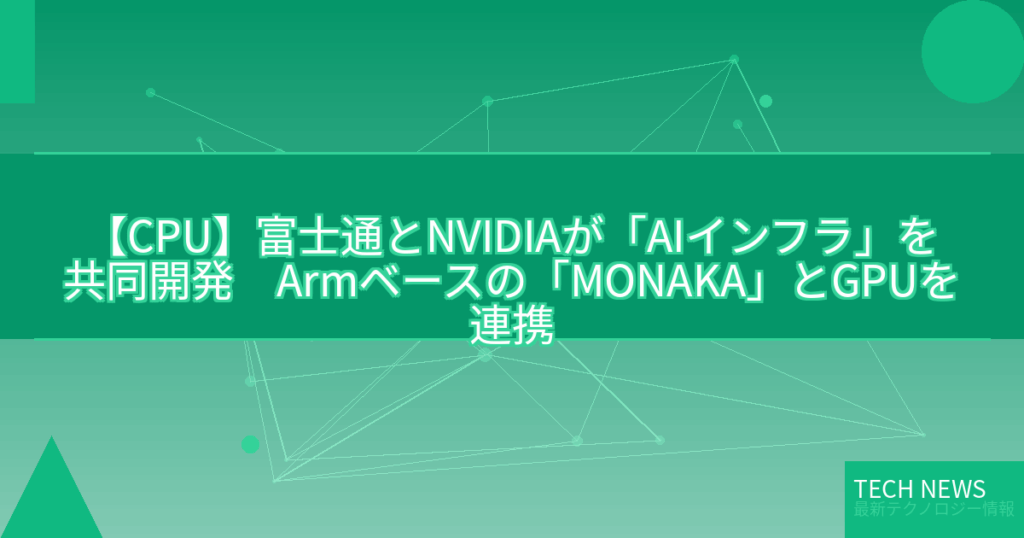 【CPU】富士通とNVIDIAが「AIインフラ」を共同開発 Armベースの「MONAKA」とGPUを連携