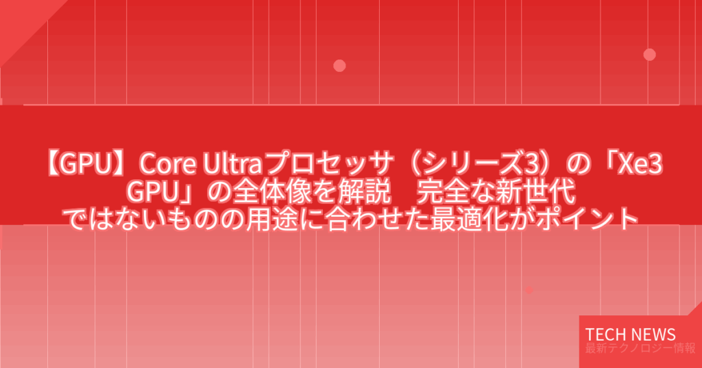 【GPU】Core Ultraプロセッサ(シリーズ3)の「Xe3 GPU」の全体像を解説 完全な新世代ではないものの用途に合わせた最適化がポイント