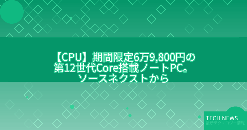 【CPU】期間限定6万9,800円の第12世代Core搭載ノートPC。ソースネクストから