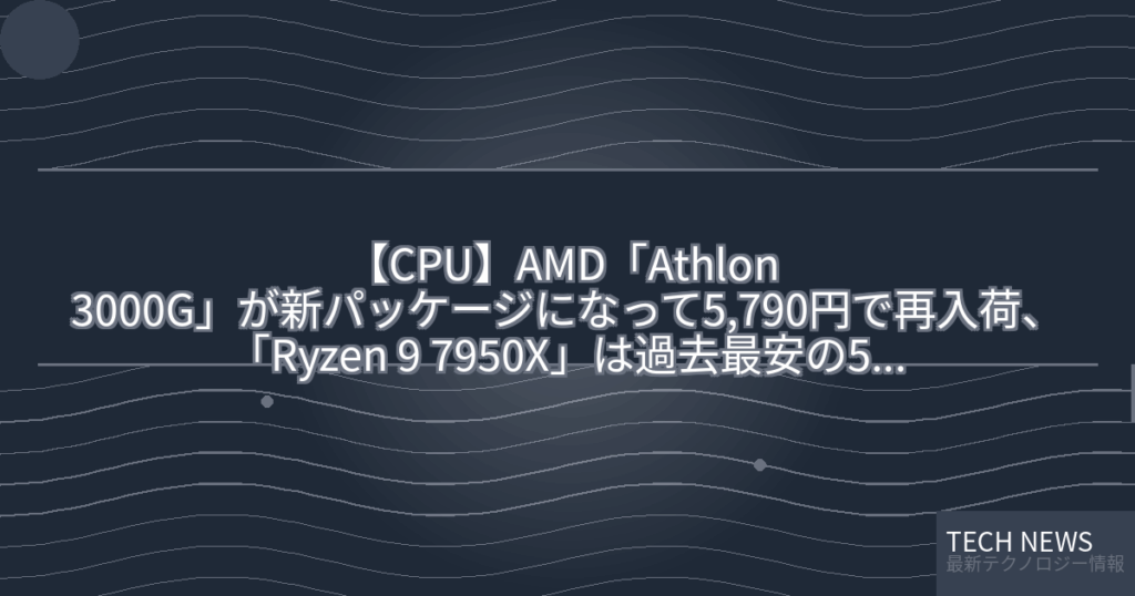 【CPU】AMD「Athlon 3000G」が新パッケージになって5,790円で再入荷、「Ryzen 9 7950X」は過去最安の59,780円 9月後半のCPU価格