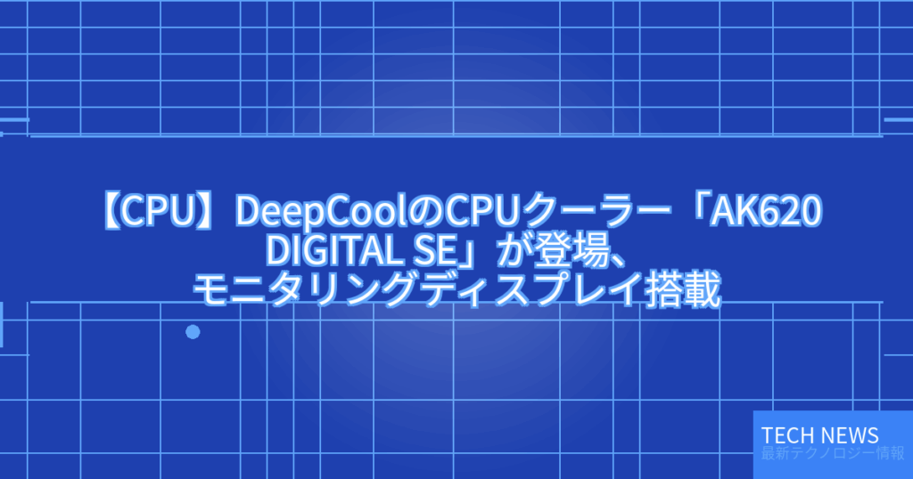 【CPU】DeepCoolのCPUクーラー「AK620 DIGITAL SE」が登場、モニタリングディスプレイ搭載