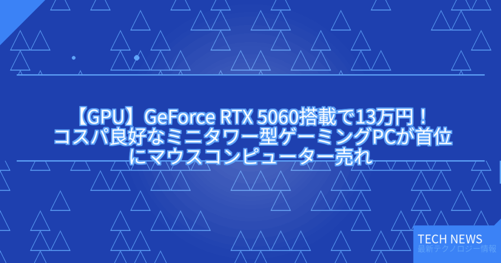 【GPU】GeForce RTX 5060搭載で13万円! コスパ良好なミニタワー型ゲーミングPCが首位にマウスコンピューター売れ筋PCランキング[独立型GPU搭載モデル編 2025/9/26版]