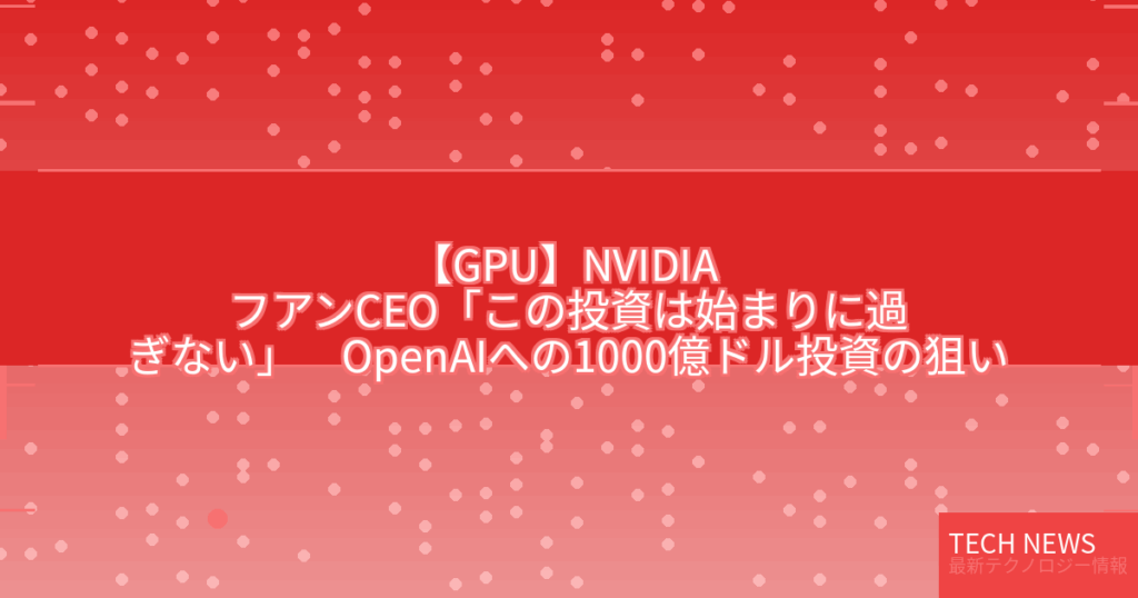 【GPU】NVIDIA フアンCEO「この投資は始まりに過ぎない」 OpenAIへの1000億ドル投資の狙い