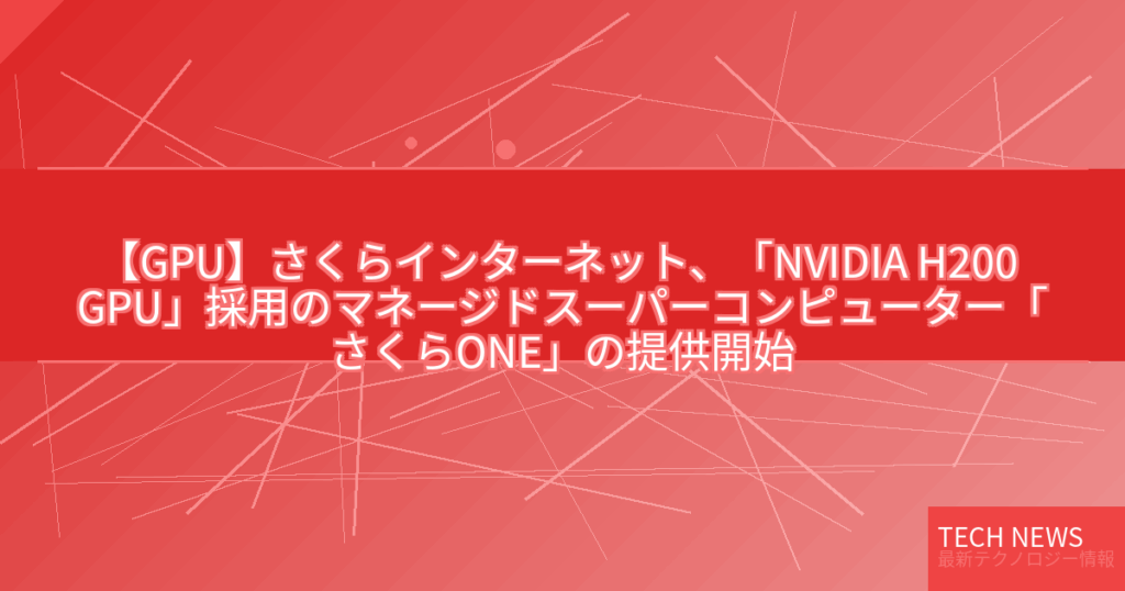 【GPU】さくらインターネット、「NVIDIA H200 GPU」採用のマネージドスーパーコンピューター「さくらONE」の提供開始