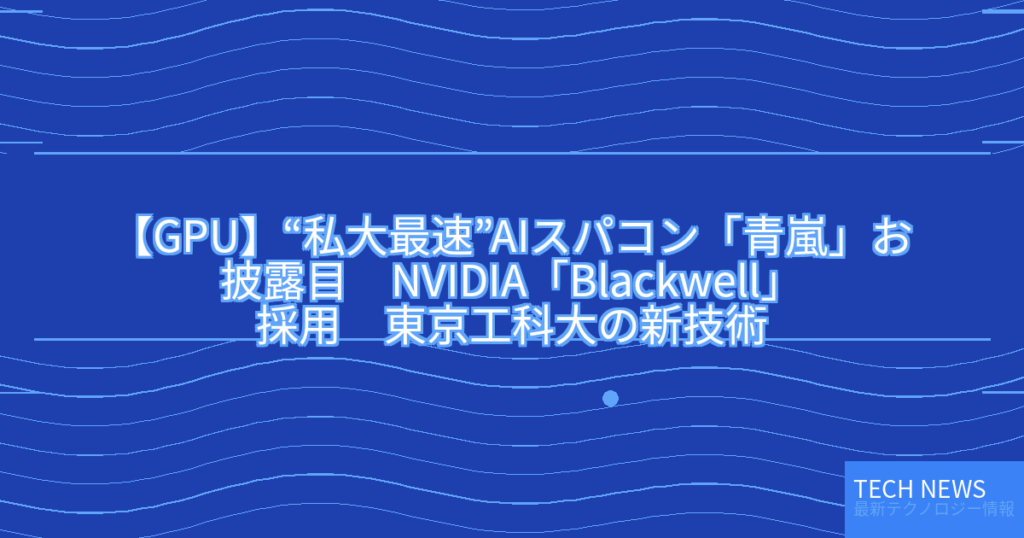 【GPU】“私大最速”AIスパコン「青嵐」お披露目 NVIDIA「Blackwell」採用 東京工科大
